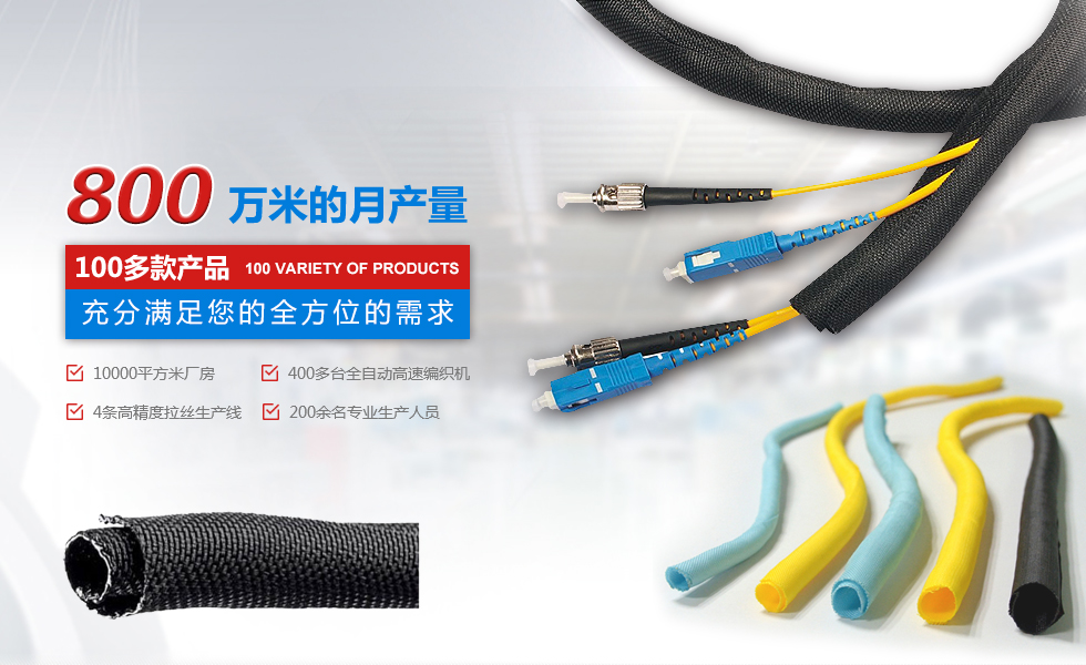 自主設(shè)計(jì)、研發(fā)、規(guī)?;笮蜕a(chǎn)企業(yè) 擁有廠房10000平米,400多臺(tái)全自動(dòng)。高速編織機(jī)四條高精度紡絲生產(chǎn)線(xiàn),員工200余人,月產(chǎn)量800萬(wàn)米,中國(guó)最大絕緣保護(hù)套管生產(chǎn)企業(yè)之一。